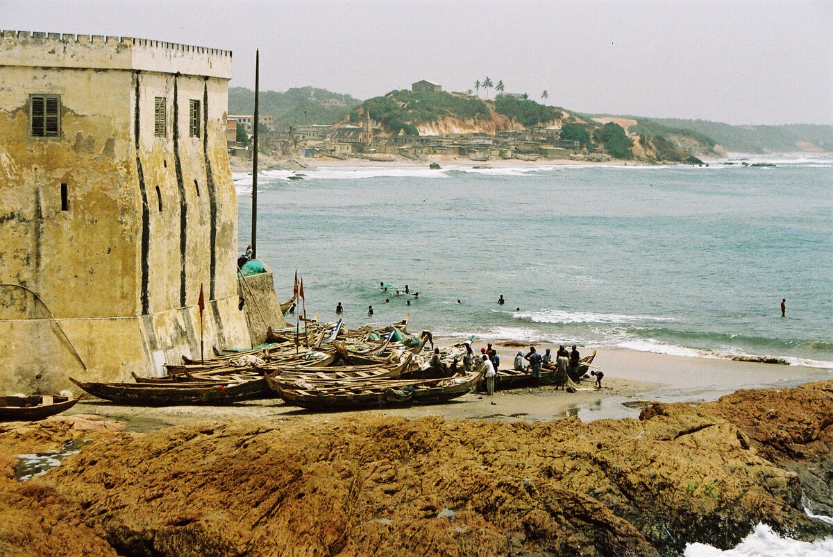 Cape Coast Castle, a massive stone fort that served as the headquarters for British colonial trade on the West African coast. Just west of it stands Elmina Castle, built in 1482 by the Portuguese and recognized as the oldest European building in sub-Saharan Africa. - Learn More Here -